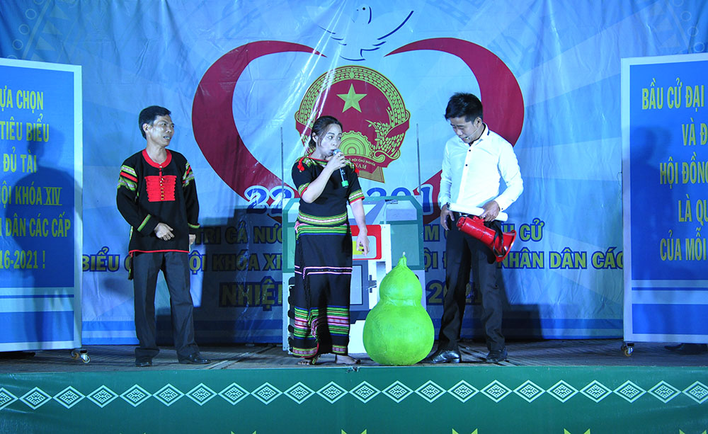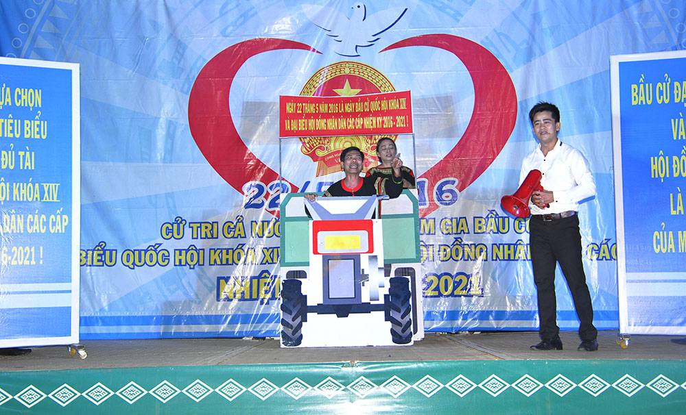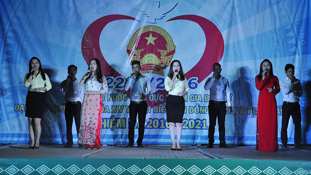 Chương trình được dàn dựng công phu, gồm: kịch thông tin, tấu hài, hỏi đáp về Luật bầu cử xen kẽ là những tiết mục văn nghệ với chủ đề ca ngợi Đảng, Bác Hồ, quê hương đất nước nhằm chuyển tải những nội dung liên quan đến cuộc bầu cử đến cán bộ, đảng viên và quần chúng nhân dân. Đồng thời kết hợp tuyên truyền các chủ trương, chính sách của Đảng, pháp luật của Nhà nước đến với đồng bào dân tộc thiểu số ở vùng sâu, vùng xa. Qua đó khơi dậy lòng yêu nước, tinh thần đoàn kết của các tầng lớp nhân dân, luôn tin tưởng tuyệt đối vào sự lãnh của Đảng, Nhà nước, tăng thêm sự gắn bó giữa Đảng và nhân dân.