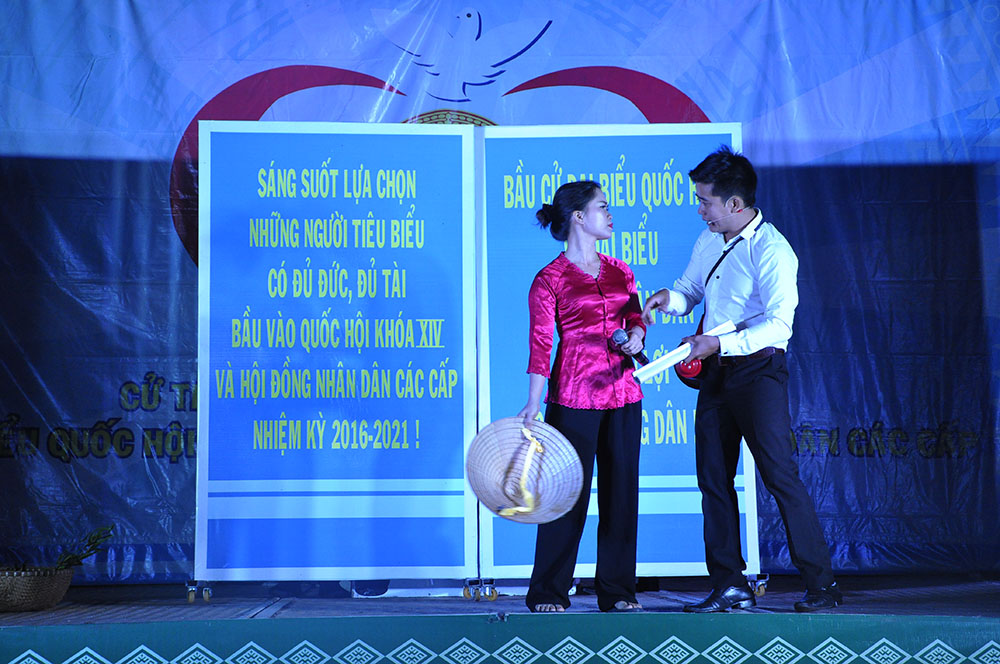 Đội Tuyên truyền lưu động tỉnh (Trung tâm Văn hóa tỉnh) vừa tổ chức chương trình tuyên truyền bầu cử đại biểu Quốc hội khóa XIV và HĐND các cấp nhiệm kỳ 2016-2021 phục vụ nhân dân trong tỉnh