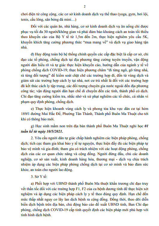 UBND tỉnh Đăk Lắk triển khai biện pháp chống dịch sau khi Buôn Ma Thuột ghi nhận 02 trường hợp mắc COVID - 19.