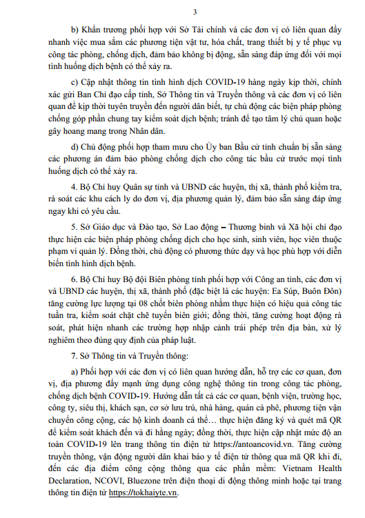 UBND tỉnh Đắk Lắk triển khai biện pháp chống dịch