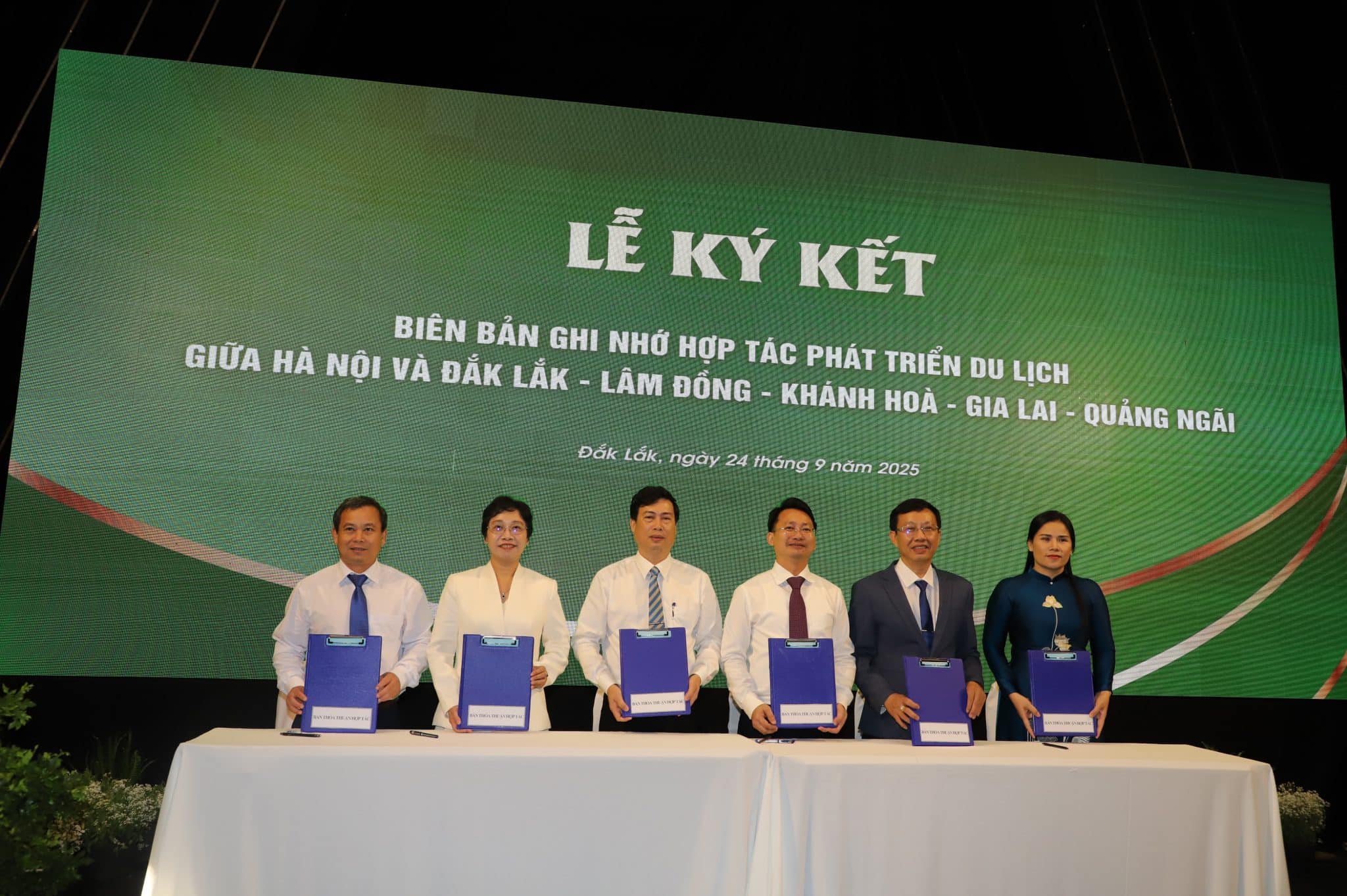 Tại hội nghị đã diễn ra Lễ ký kết biên bản hợp tác phát triển du lịch giữa Sở Du lịch Hà Nội với Sở Văn hóa, Thể thao và Du lịch các tỉnh: Đắk Lắk, Gia Lai, Lâm Đồng, Quảng Ngãi, Khánh Hòa giai đoạn 2026-2030; một số doanh nghiệp du lịch, lữ hành ký kết biên bản hợp tác trong thời gian tới…