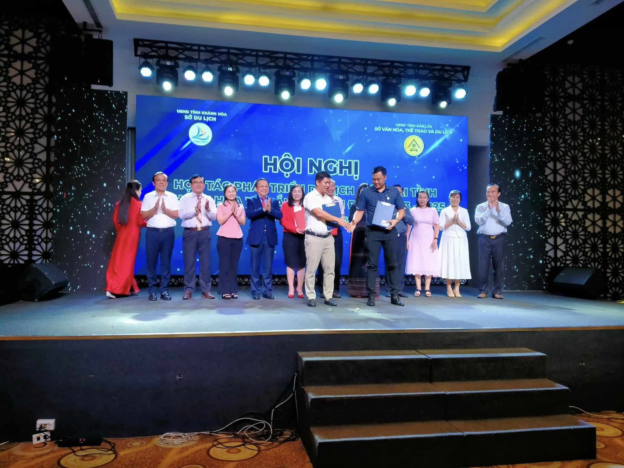 Lãnh đạo Sở Văn hóa, Thể thao và Du lịch Đắk Lắk và Sở Du lịch khánh hòa trao văn bản ký kết hợp tác tại hội nghị được tổ chức vào năm 2023