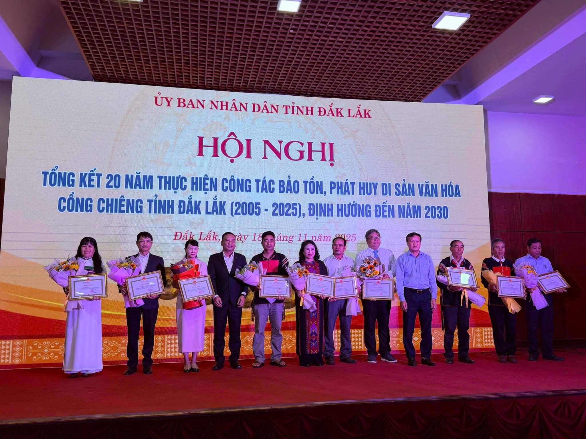 Trong khuôn khổ các hoạt động tại Tuần Di sản văn hóa các dân tộc tỉnh Đắk Lắk năm 2025, ngày 18/11/2025, UBND tỉnh Đắk Lắk đã tổ chức Hội nghị Tổng kết 20 năm công tác bảo tồn và phát huy di sản văn hóa cồng chiêng (2005-2025), định hướng đến năm 2030. Tham dự Hội nghị có nhiều chuyên gia, nhà nghiên cứu văn hóa và nghệ nhân trong tỉnh Đắk Lắk.