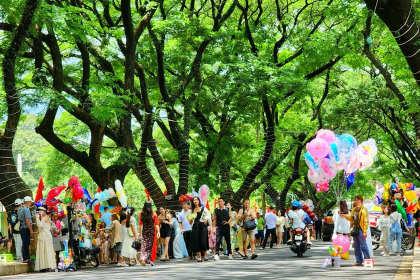 Tuyến đường rợp bóng cây giữa lòng Ban Mê đang thu hút du khách đến chụp ảnh